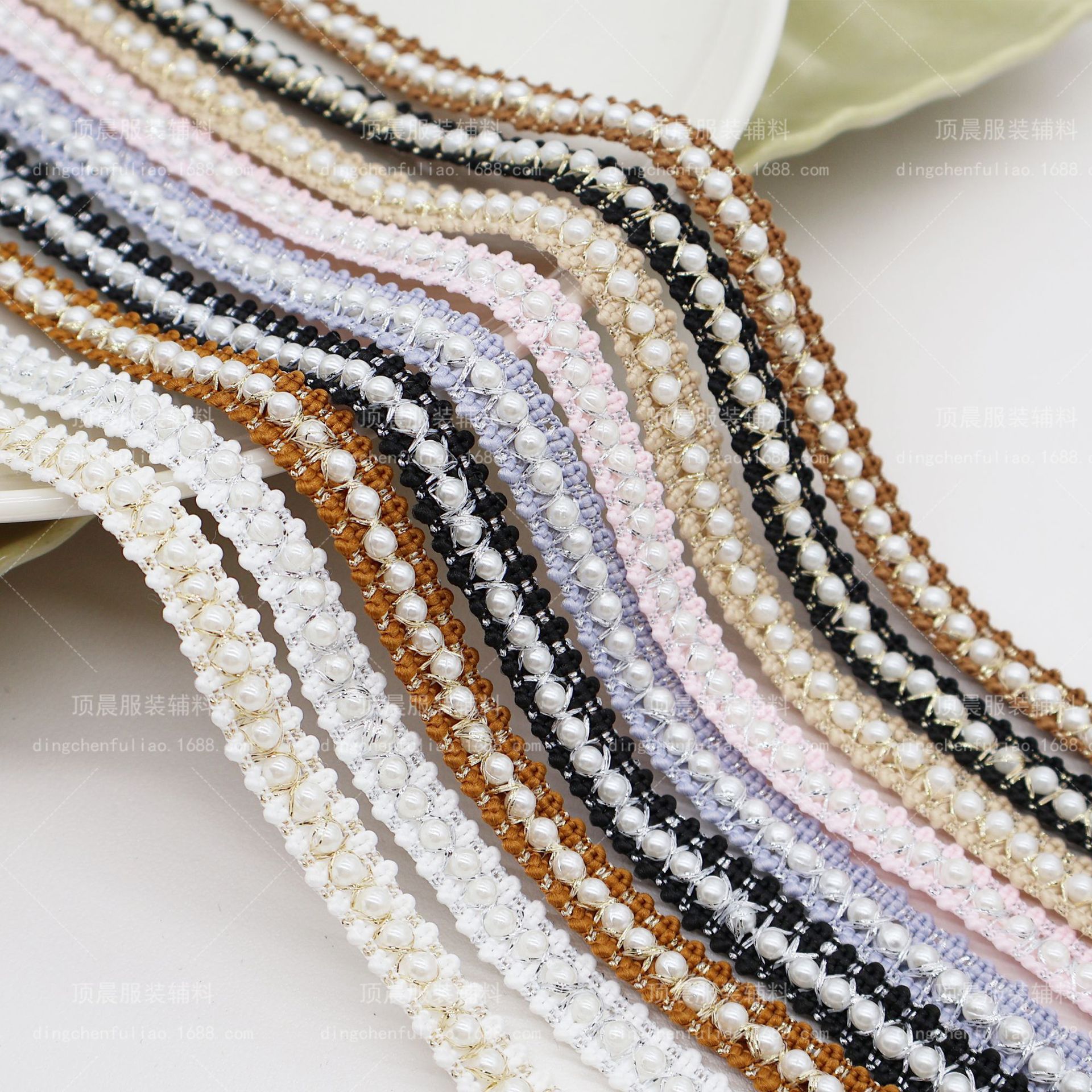 New 1cm Gold Silk Fragrant Style Pearl Ribbon DIY Handmade Bead Lace Clothing Jacket Hanfu Accessories