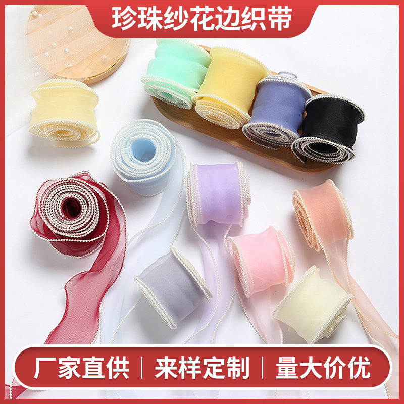 6cm Creative Pearl Yarn Decorative Ribbon Curved Edge Ribbon Fairy Ribbon Mixed Lace Accessories Bow bouquet