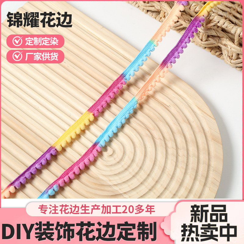 Manufacturer of Gradient Dyed Colorful Pom-Pom Lace Handmade DIY Materials for Hair Accessories, Pom-Pom Curtains, Home Textiles, and Clothing Accessories