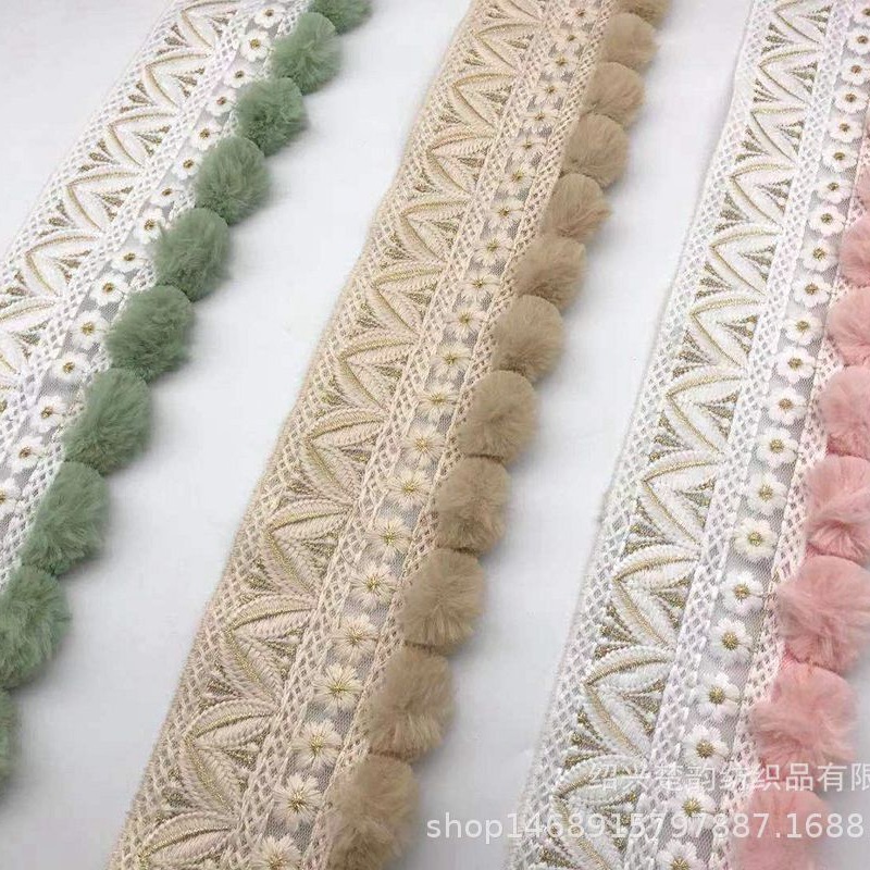 2023 New Curtain Lace Trim Accessories Cream Style Pom-Pom High-End Three-Dimensional Lace Ins Handmade DIY Long