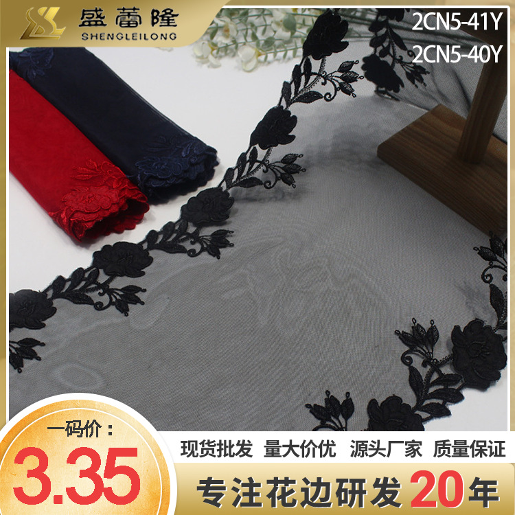 Shenglilong Modern Three-Color Mesh Double-Sided Fiber Flower Embroider Lace 26cm Light and Transparent Women's Home Textile Accessories