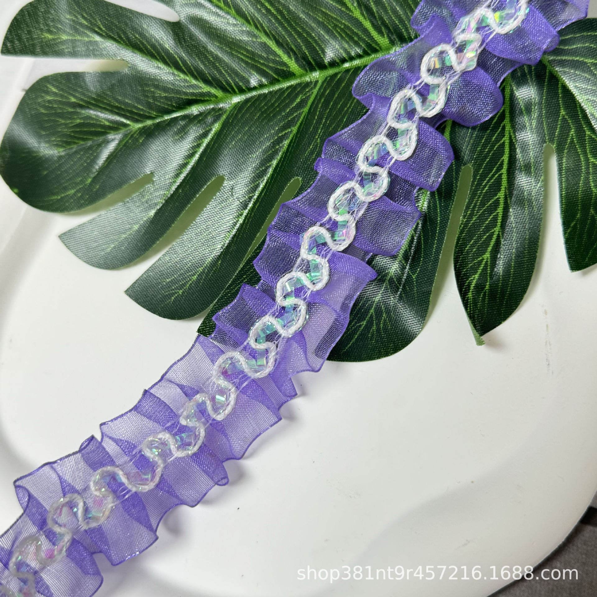 2.5cm Snow Gauze with Shiny Lace Trim, Pleated Handmade Accessories, Colorful Double-Layer Lace Satin DIY