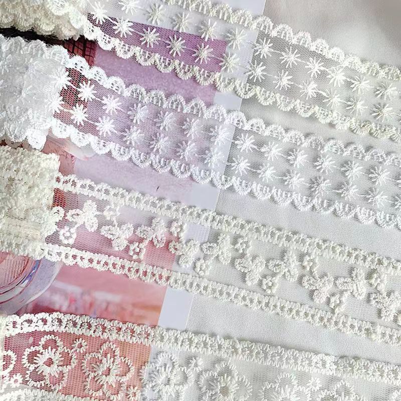 Lolita Embroider Water-Soluble Lace Accessories in Stock Milk Silk Single-Sided Small Flower Wave Lace Lace Barcode