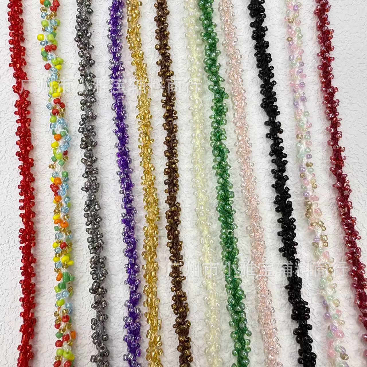New Spot Glass Beaded Rope Lace Handmade Beaded Ribbon Pearl Barcode Clothing Shoulder Strap Decorative diy Accessories