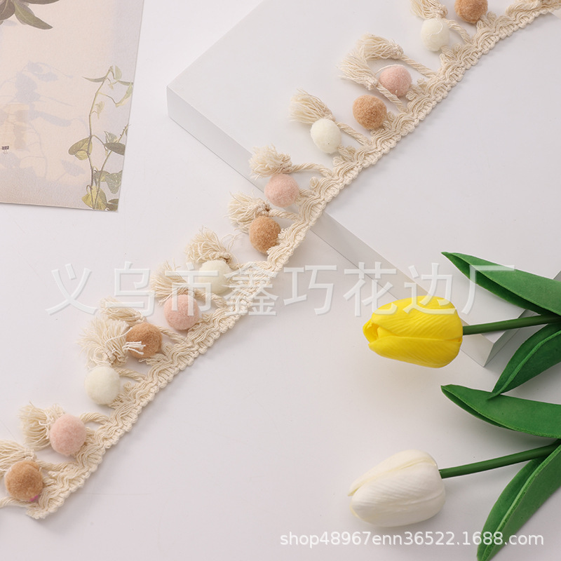 Source Manufacturer Spot Supply Tassel Hair Ball Cotton Edge Clothing Accessories Curtain Sofa Cushion Colorfulful Hair Ball Webbing