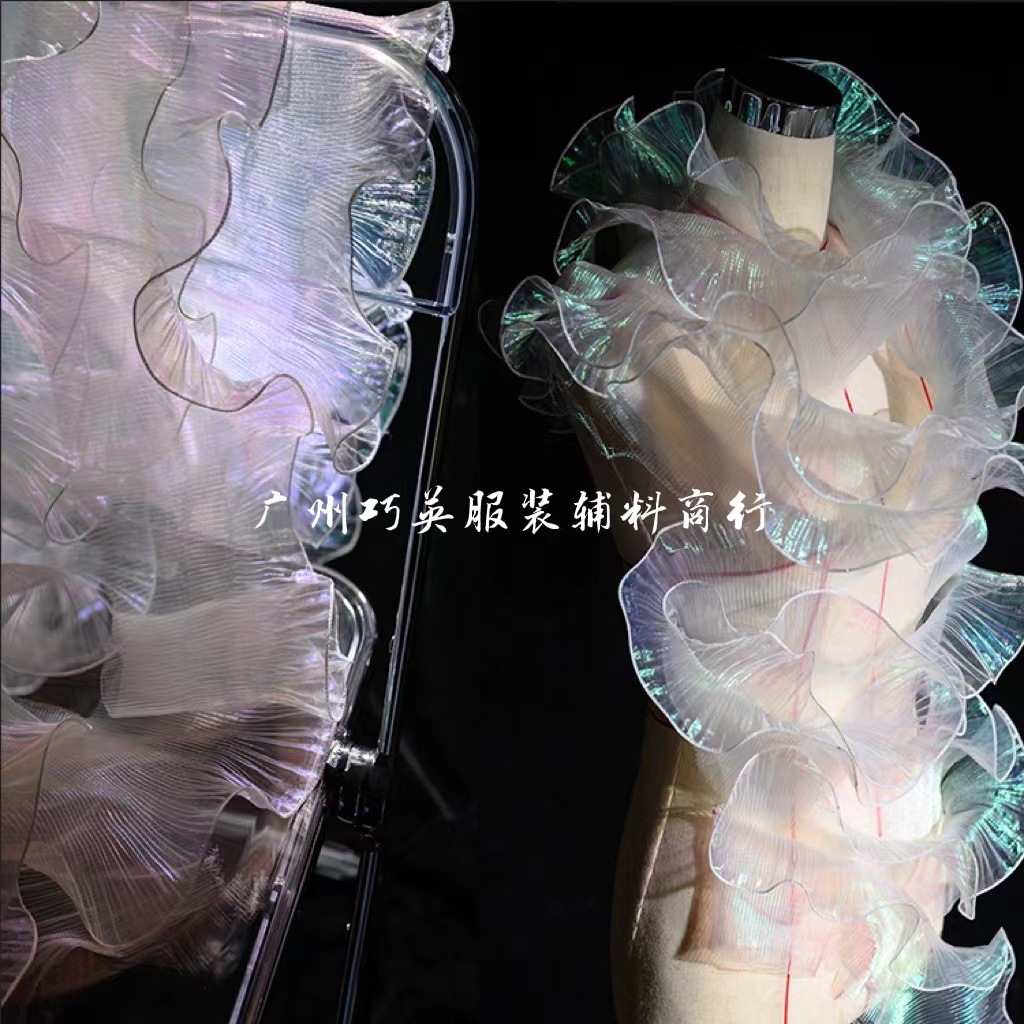 New In-Stock Polyester Organza Crystal Lace Trim for Wedding Dress Accessories with Ruffled Laser Embroidery