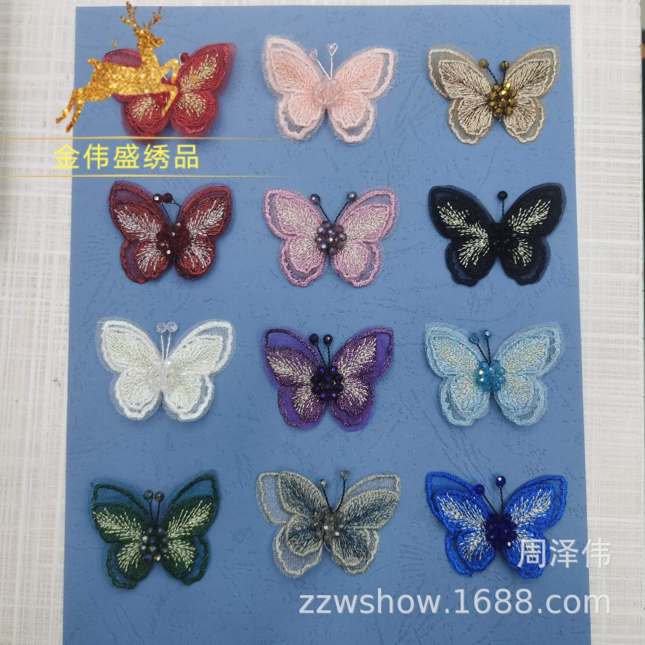 Three-dimensional Hand-embroidered Crystal Butterfly Mesh Gradient Double-layer Cloth Patch Hairpin Headwear DIY Jewelry Accessories Accessories