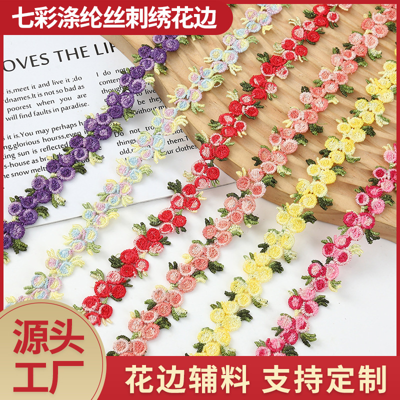 Colorful Polyester Silk Embroider Lace Clothing Headwear Lace Accessories DIY Handmade Barcode Clavicle Chain Cheongsam Accessories