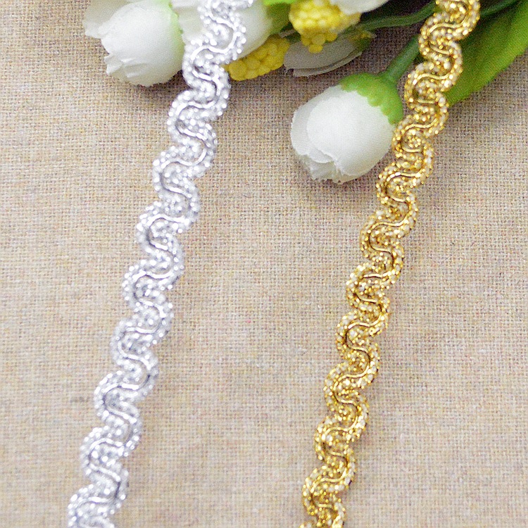In-Stock Two-Tone Gold and Silver Wire 5mm Wave-Shaped Small Corrugated Core-Wrapped Thread Lace DIY Crafts Ribbon Shoe Decoration Accessories