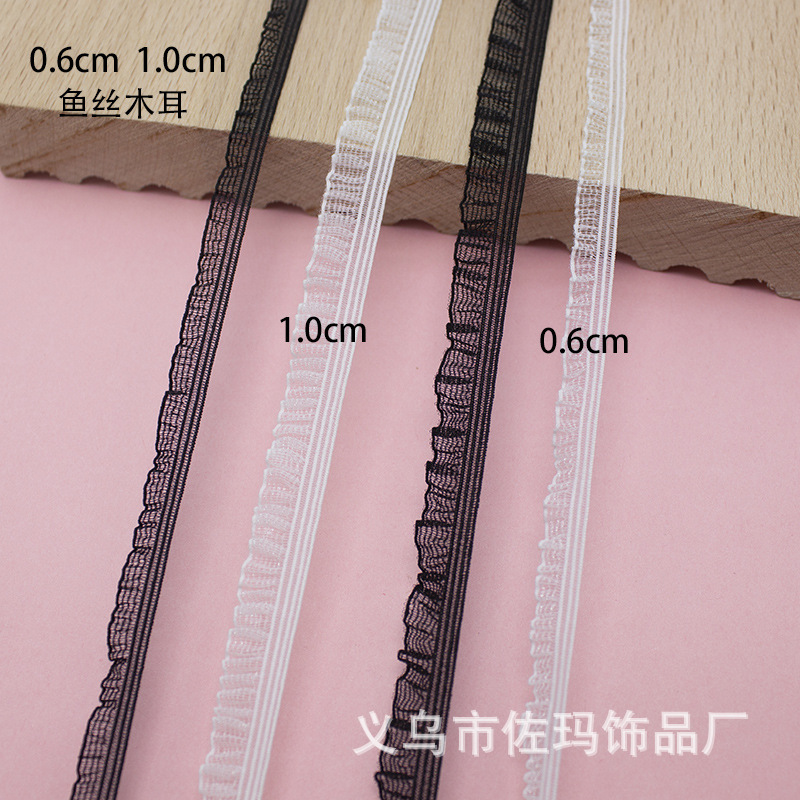 New in stock 6mm10mm unilateral fish silk fungus elastic lace DIY skirt princess style children's clothing hair accessories