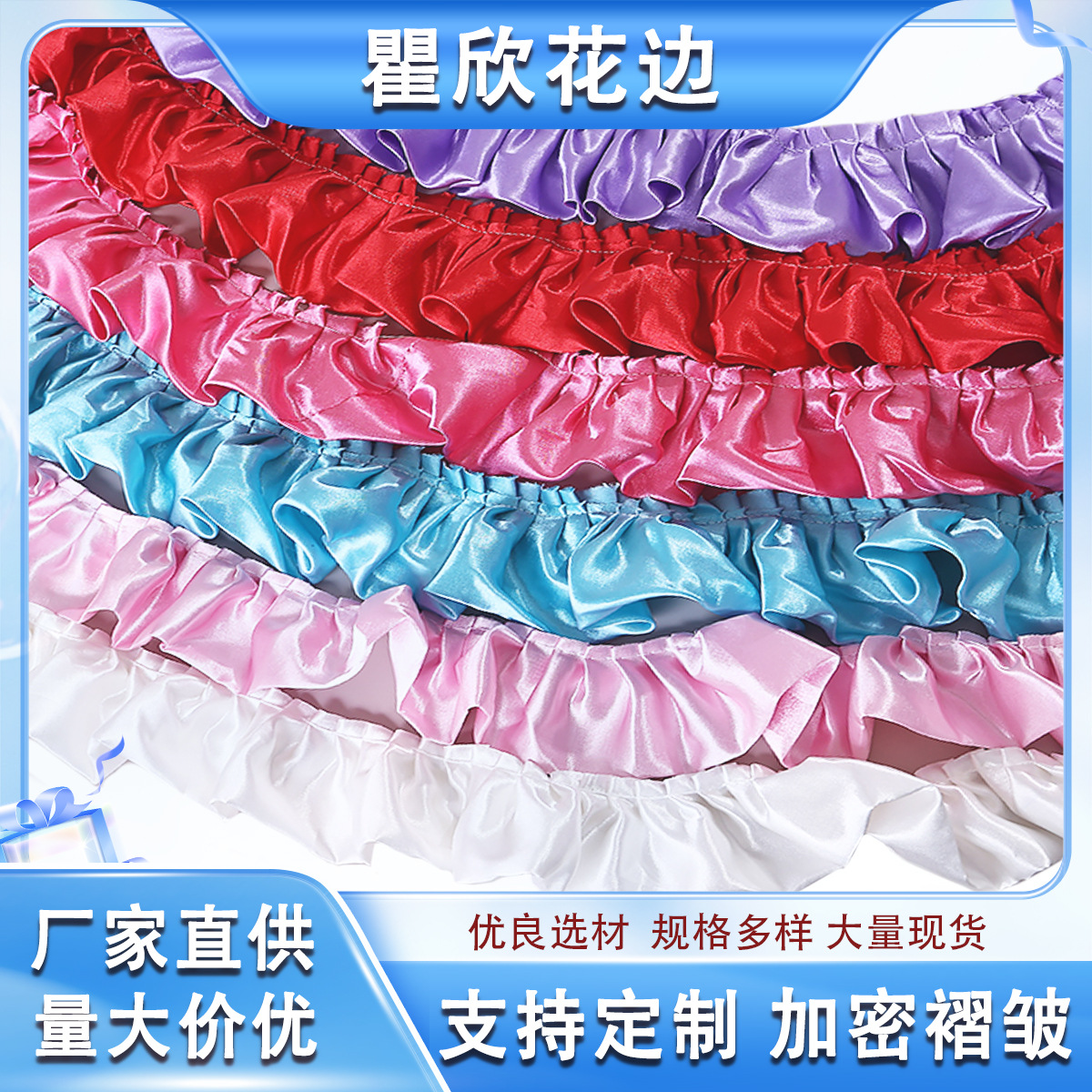 5.5cm Wide Double-Layer Satin Colorfulful Fungus Edge Pleated Lace Curtain Pillow Clothing Baby Clothes DIY Decoration