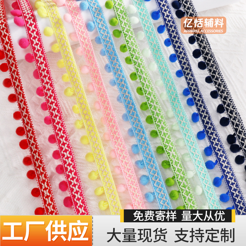 3cm Retro Plaid Color Small Fur Ball Tassel Ribbon Lace Simple Ethnic Style Clothing Accessories Accessories