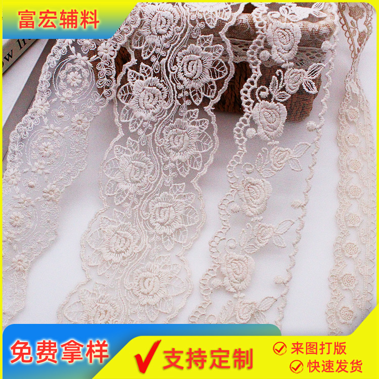 Spot Wholesale Lace Lolita Baby Clothes Mesh Embroider Lace New Chinese Style Rose Flower Lace Accessories