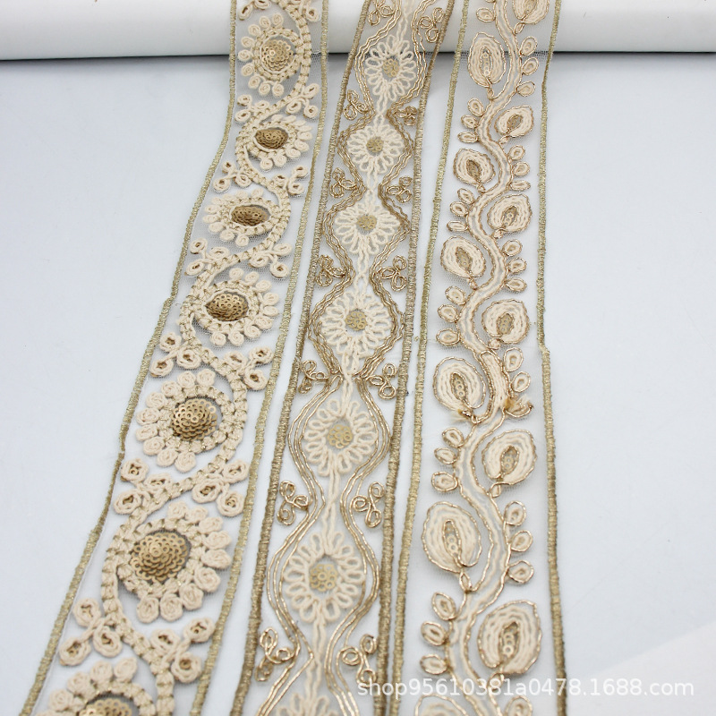 Factory direct retro cotton embroidery mesh clothing lace accessories cotton strand rope embroidery accessories bar code spot