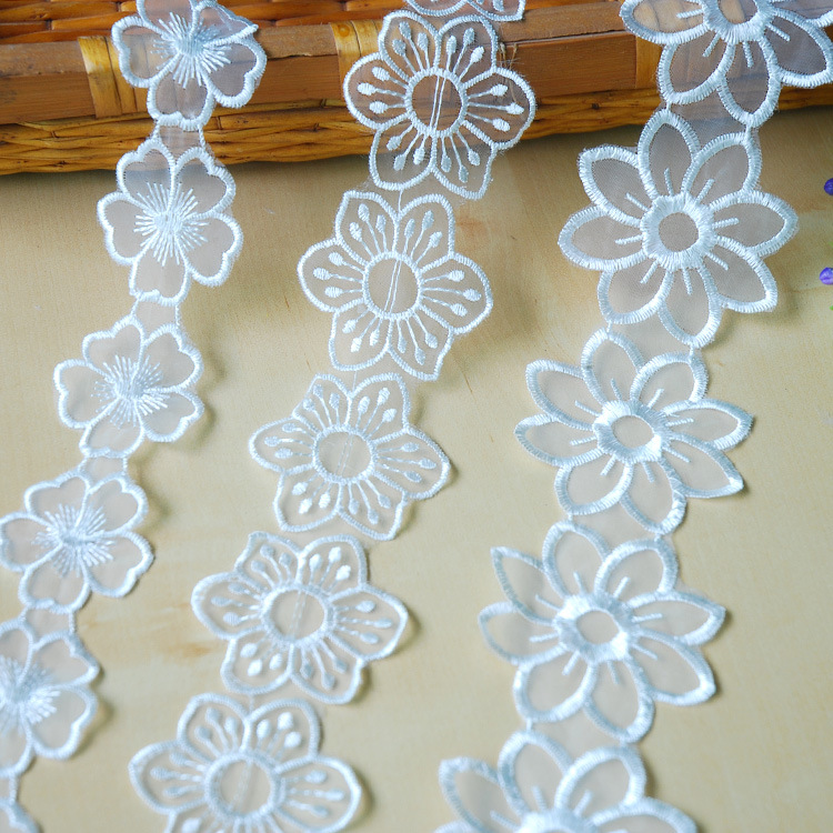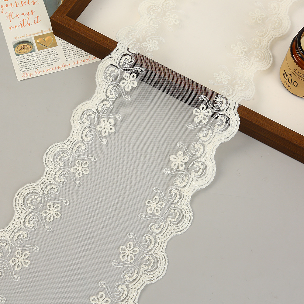 1.8cm White Milk Silk Embroider Narrow Lace DIY Suitable for Headwear, Shoe Flowers, Brooches, Butterfly Lace Accessories
