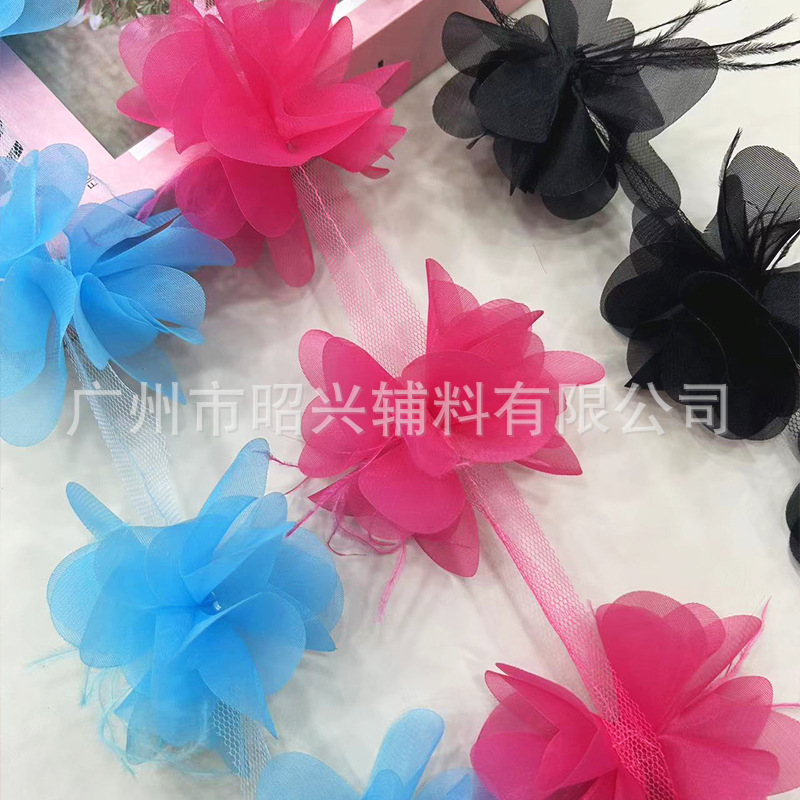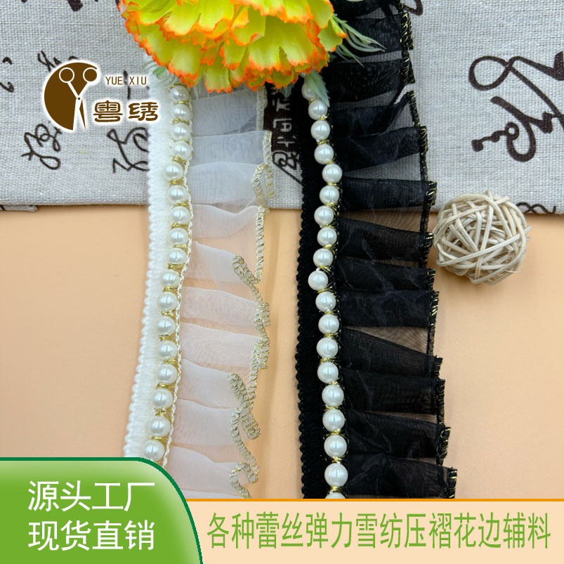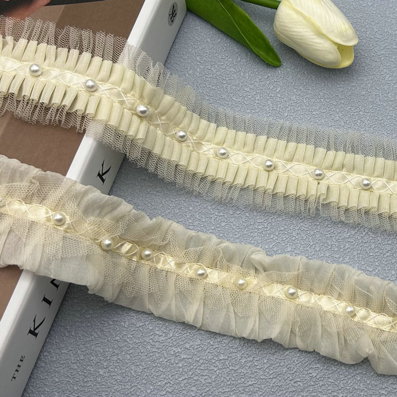 Chiffon Sequin Lace Accessories Clothing Decorative Lace DIY Plus Pearls Double Layer Pleated Lace Wholesale
