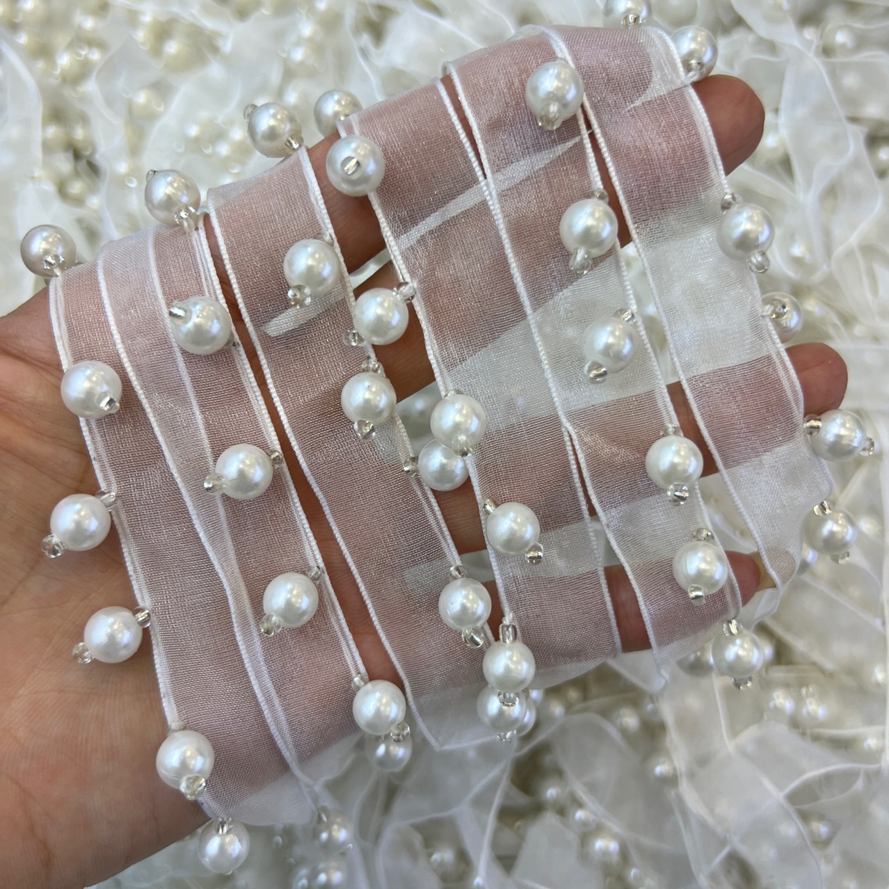 Spot 4cm Imitation Pearl Lace Curtain Accessories Beads Lace Clothing Handmade DIY Decorative Skirt Belt