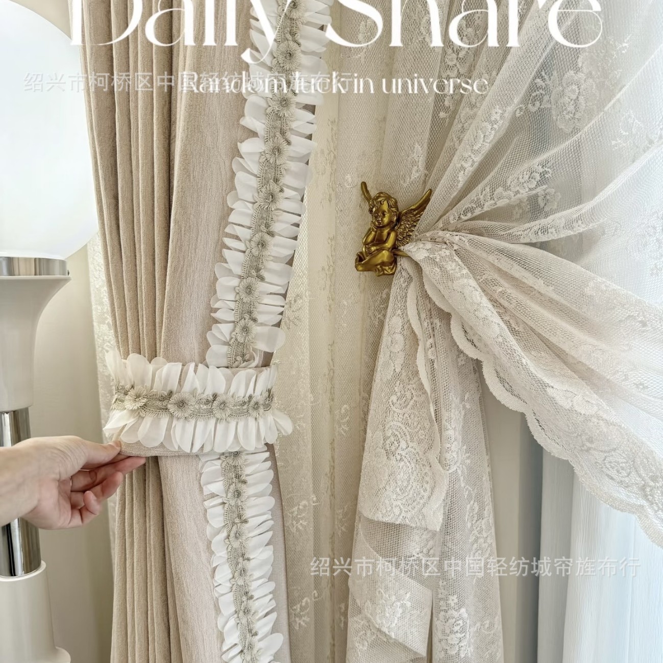Lace Collection: Little Red Chinese Style Curtain Stand Edge Simple Lace Pearl Splicing Accessories Pom-Pom Popular Lace