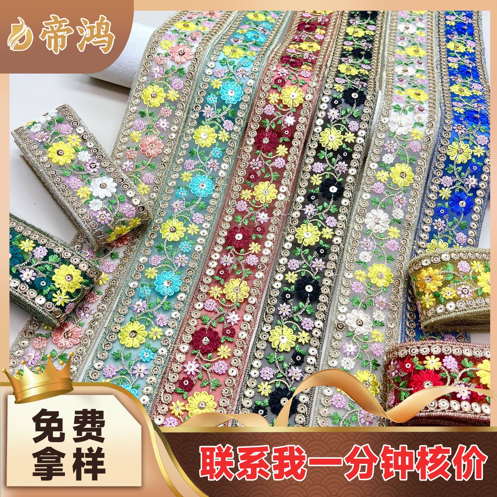 in stock Supply Triangle Sequin Embroidery Lace Barcode Lace Curtain Home Textile Ethnic Style Accessories Lace Cross Border