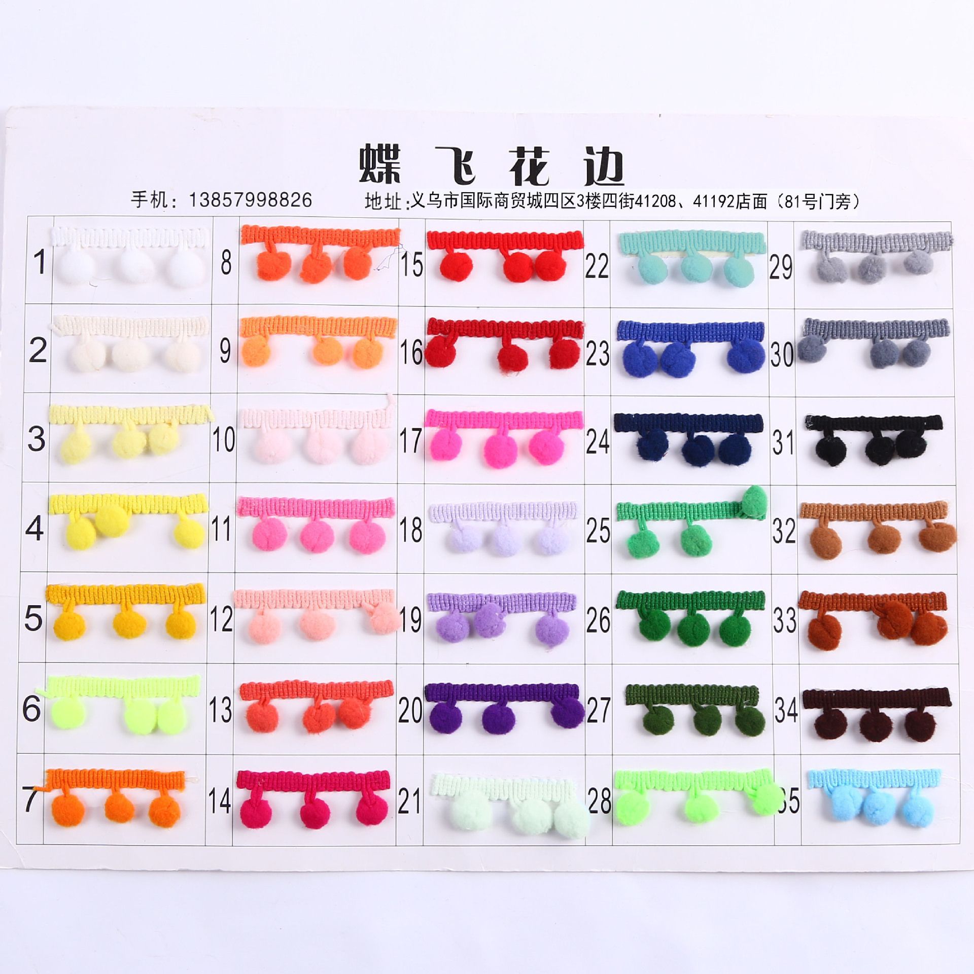 35 Colors in Stock Supply 1cm Right Angle Small Fur Ball Lace Straight Foot Fur Ball Lace Clothing Accessories DIY Handmade
