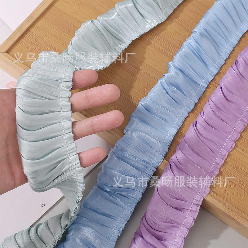 Double Color Glitter Crystal Satin Single Pleat Lace Belt Handmade DIY Clothing Cuff Collar Pleated Lace