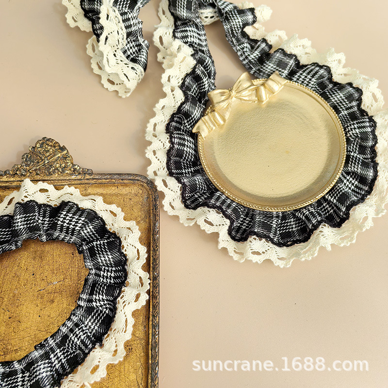 Retro Plaid Lace Preppy Style DIY Hair Accessories Pet Neck Scarf Baby Clothes Cuffs Fabric Accessories