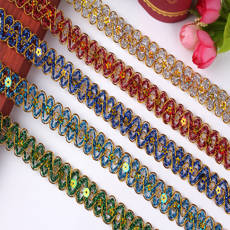 Factory wholesale wave gold lace beads gold and silver lace clothing accessories performance color sequins lace