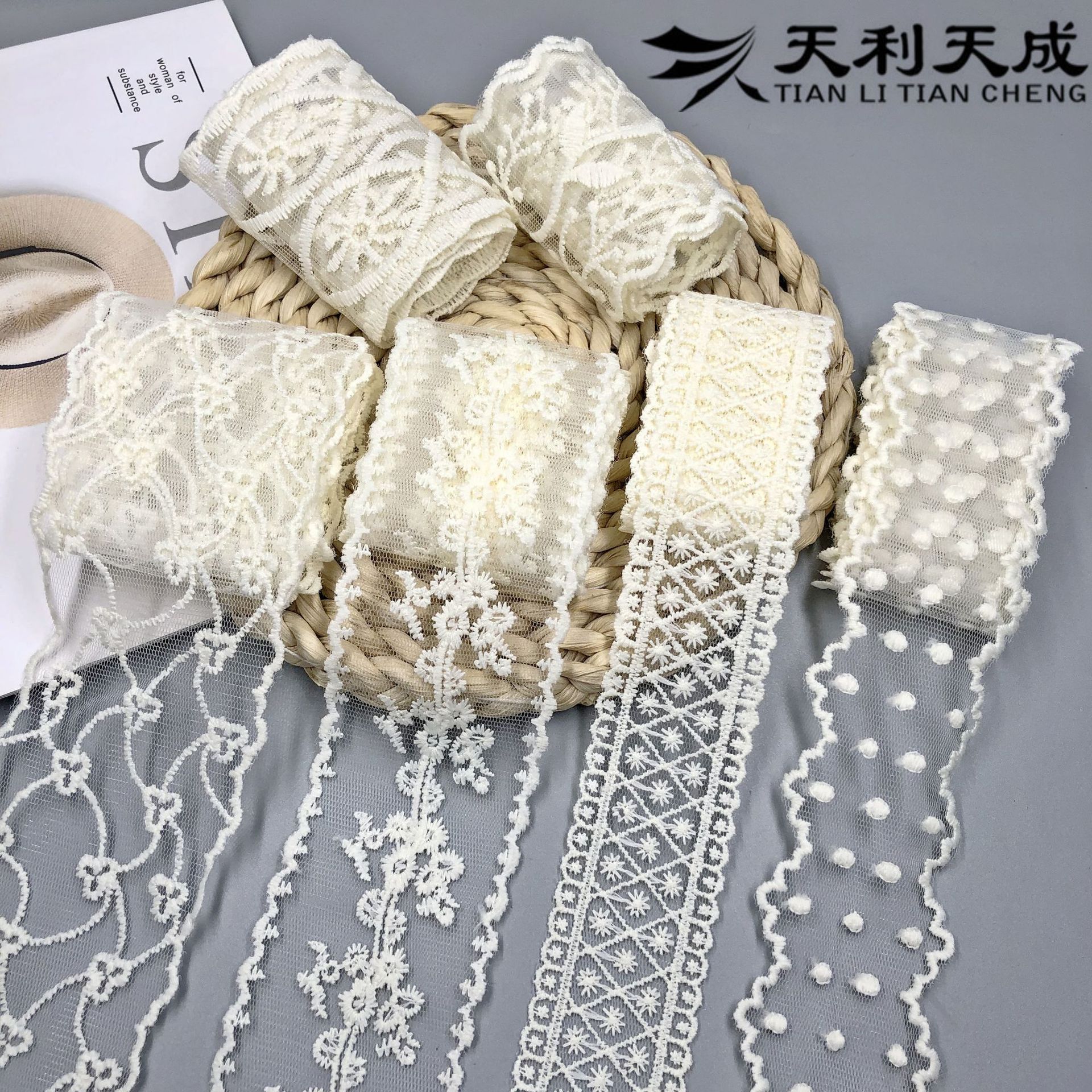 Beige mesh curtain bouquet bow decoration embroidery lace lace strap rope 30 yards/spot