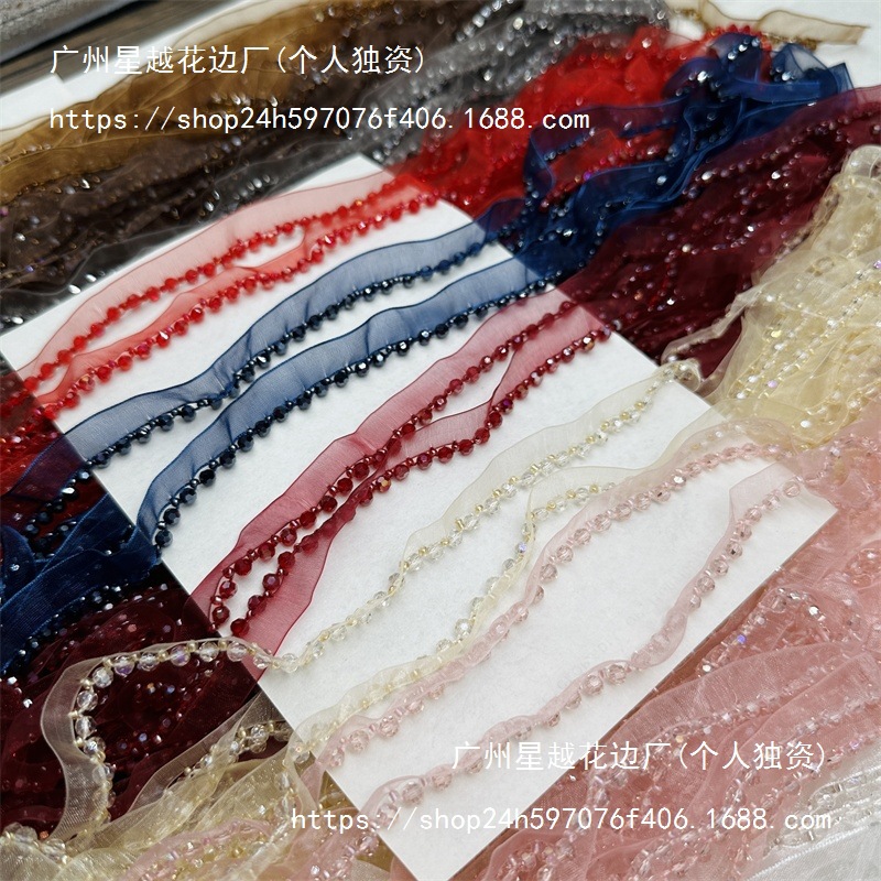 1.2cm Wide New Colorful Mesh Crystal Beaded Lace Accessories Handmade DIY Clothing Edge Jewelry Accessories