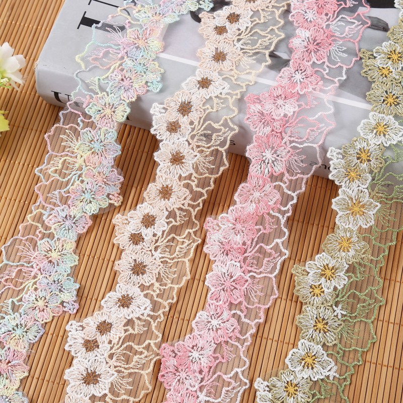 5.5cm Polyester Embroider Lace Curtain Cheongsam Colorfulful Flower Decoration Accessories Handmade DIY Jewelry Accessories Wholesale