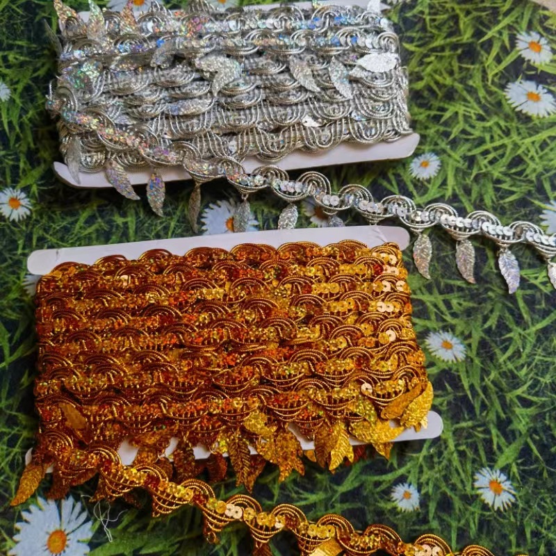 Leaf Pattern Sequin Ribbon Dress Bag Decoration Accessories Bead Ethnic Style Embroidery Lace 7CM Wide