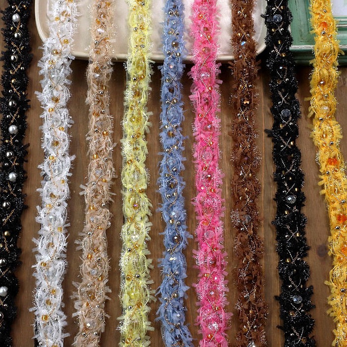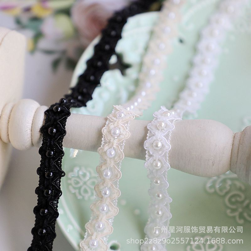 Unilateral small fragrant style ribbon nail bead lace diy Han clothing accessories pearl lace spot wholesale