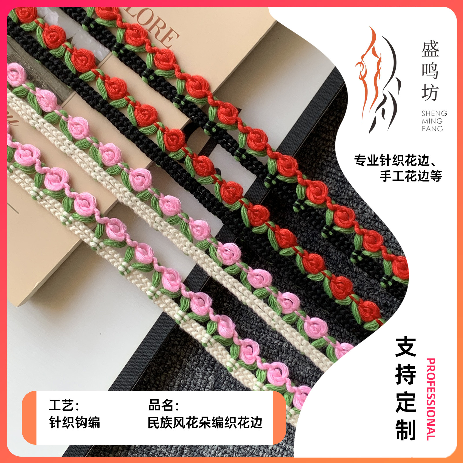 in stock Bohemian Ethnic Style Flower Lace Accessories DIY Handmade Pastoral Style Flower Woven Cotton Ribbon