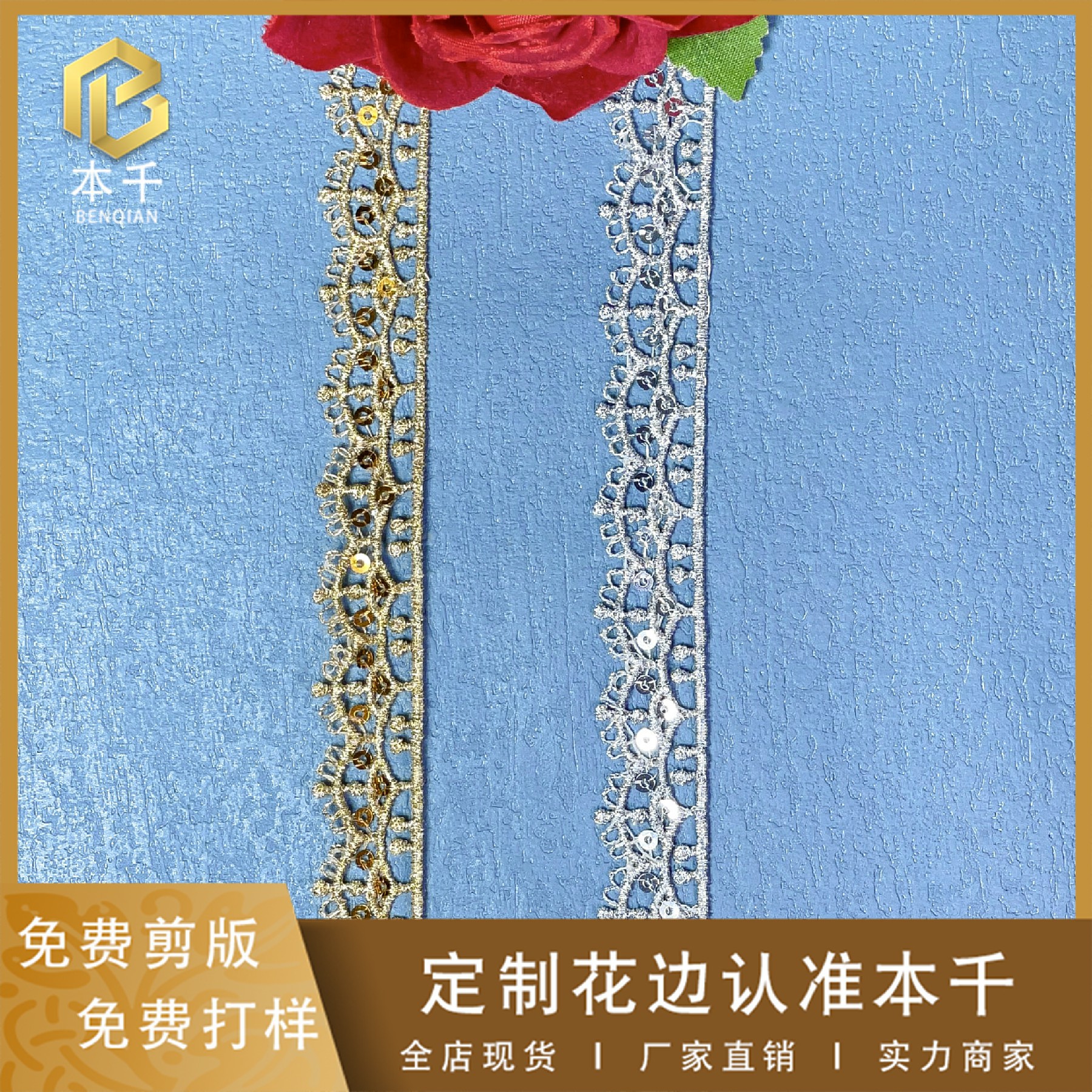 Financial explosion wholesale wave sequins lace clothing accessories color lace European and American gold lace