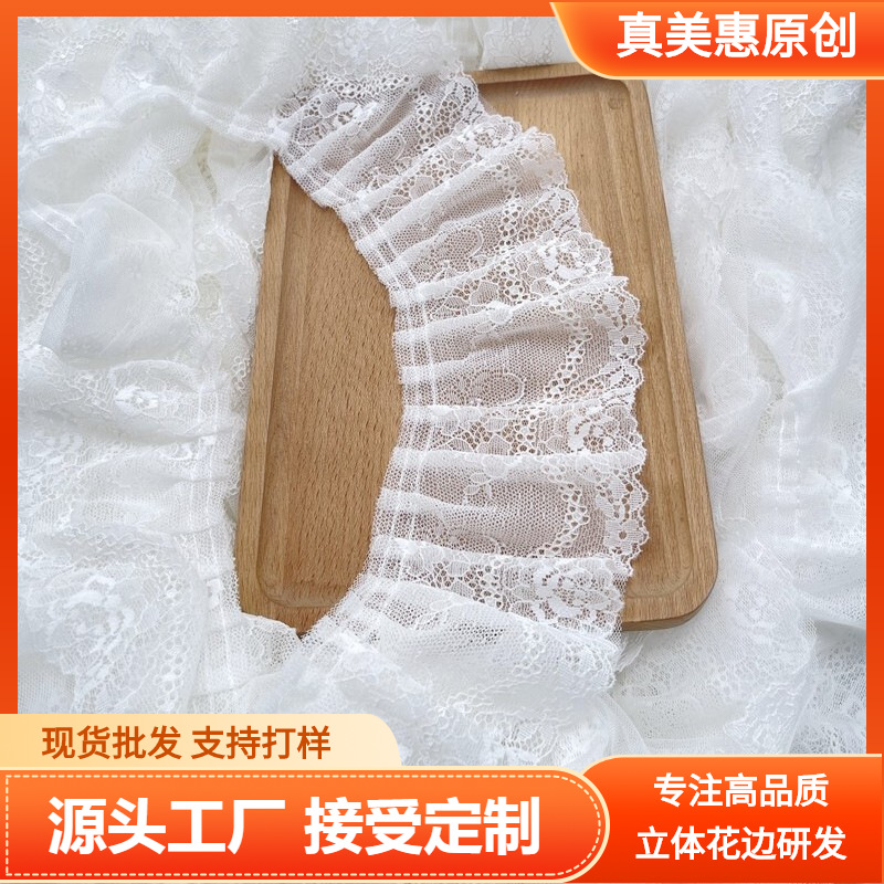 9cm white double-layer pleated Lolita clothing skirt skirt curtain ruffled lace accessories