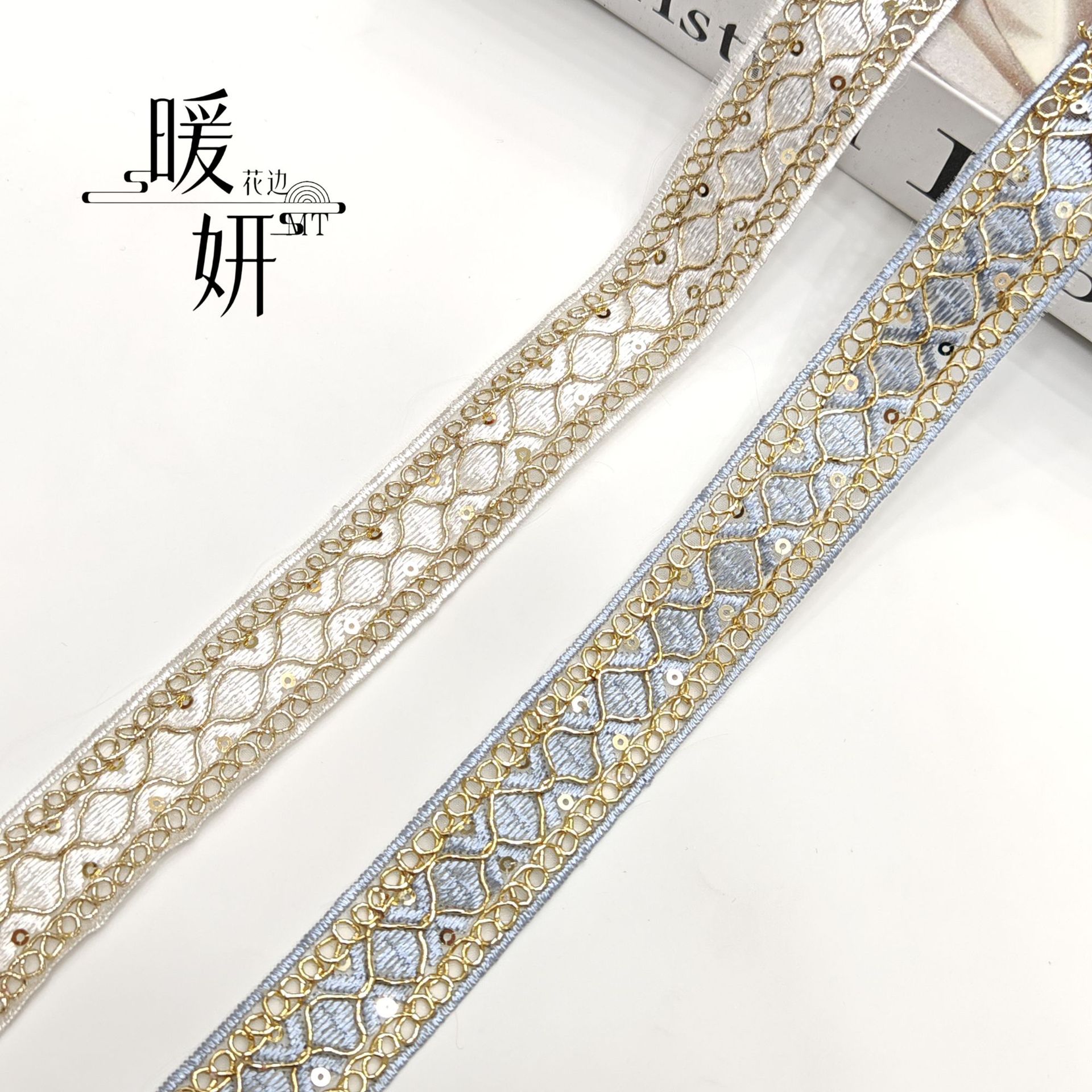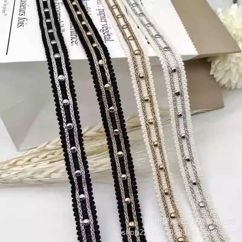 About 1.4cm wide Bilateral gold and silver silk fixed nail webbing headdress hat brim collar cuff lace garment accessories