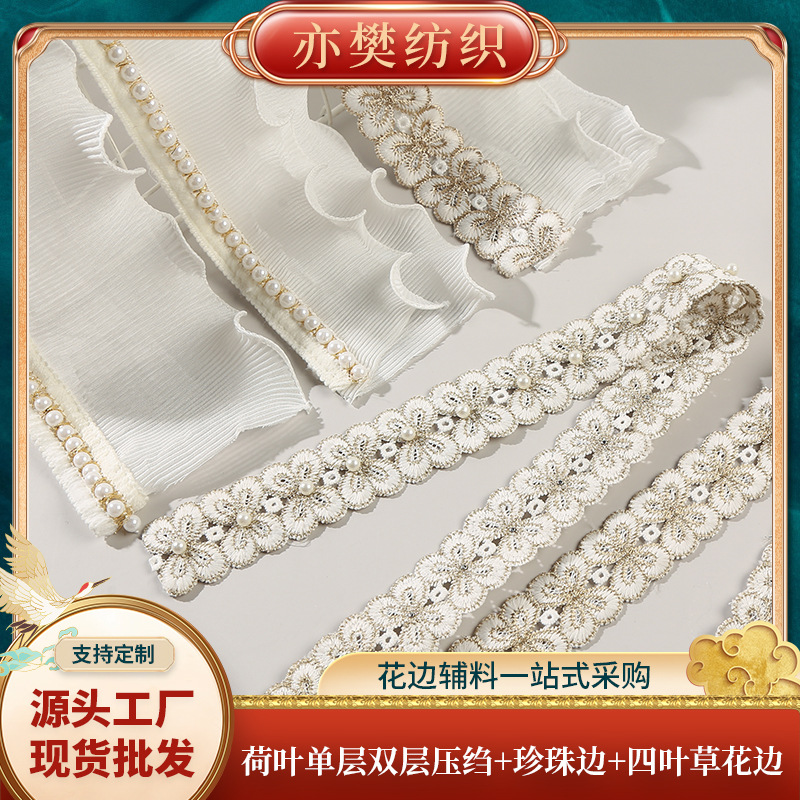 Chiffon Single and Double Layer Crepe Lotus Leaf Lace Dance Clothing Accessories Accessories Single-sided Pearl Edge Water-soluble Embroidered Lace
