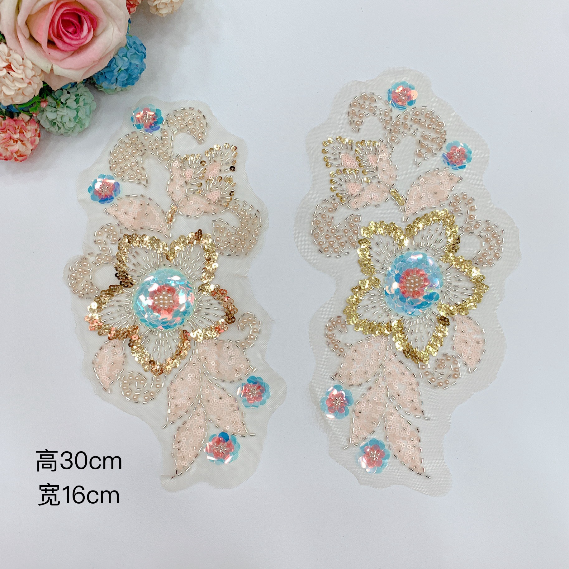 Spot Pink Gold Heavy Industry Bead Embroider DIY Corsage Embroider Wedding Dress Evening Dress Cloth Patch Sewing Lace Accessories