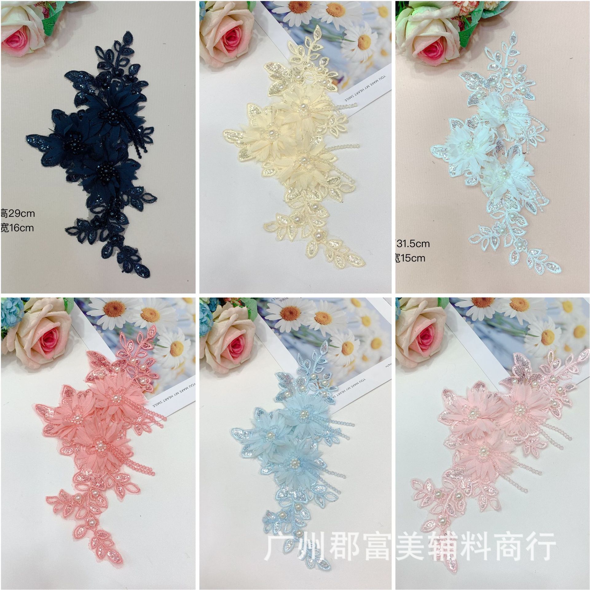 New In-Stock Heavy Embroidery Applique with Floral Mesh Base, Three-Dimensional Bead Embroidery, Sequins DIY Dress Sewing Lace