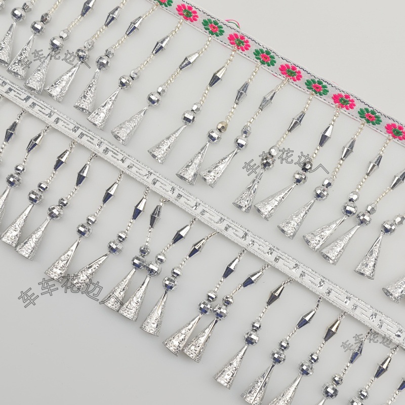 Silver Beads Silver Horn Lace Ethnic Style Handmade Beads Accessories Minority Clothes Decorative Hanging Beads Accessories
