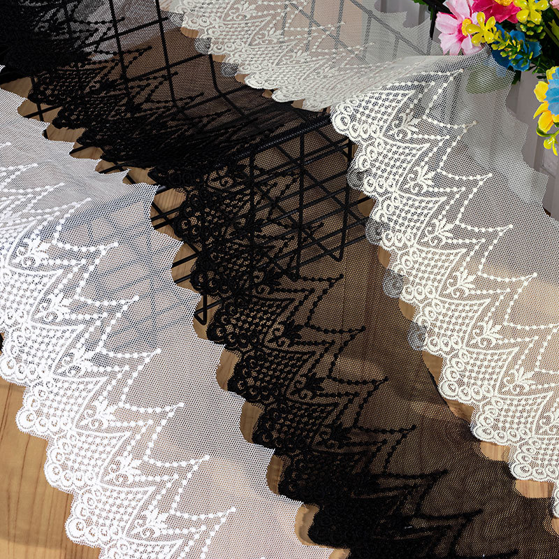 Tianyuan Lace Trim, 8.8cm Wide, European-Style Polka Dot Wave Mesh Lace Trim, Lolita Embroidery Decorative Fabric