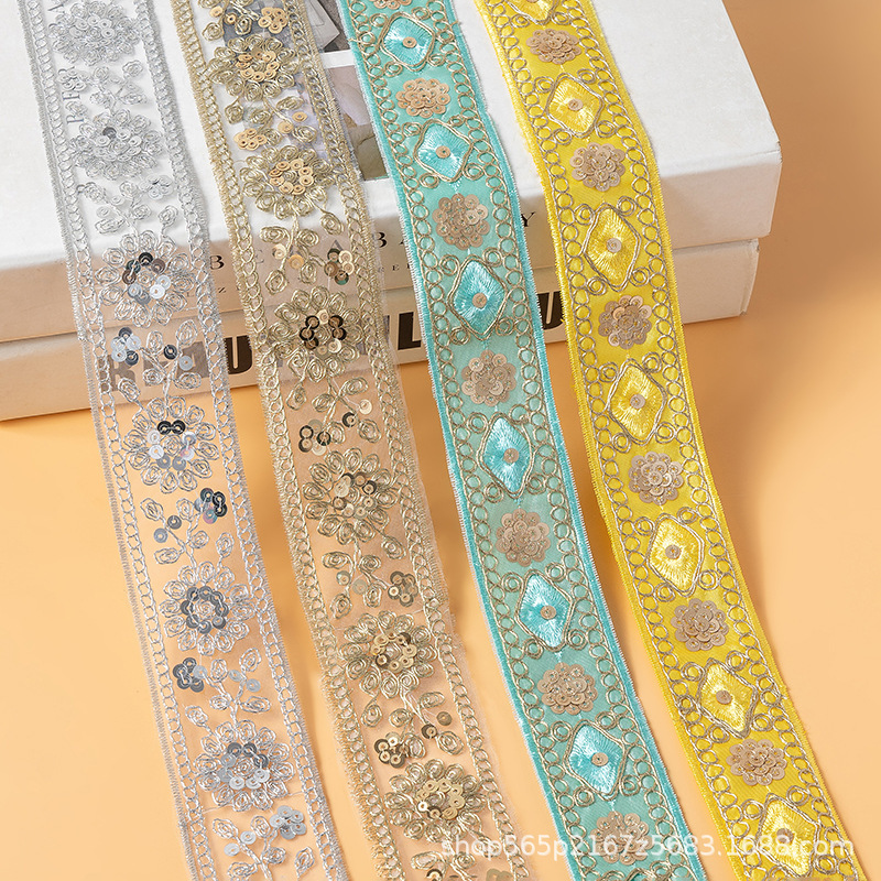 New ethnic embroidery car bone sequins lace vintage lace mesh bottom golden strands clothing accessories