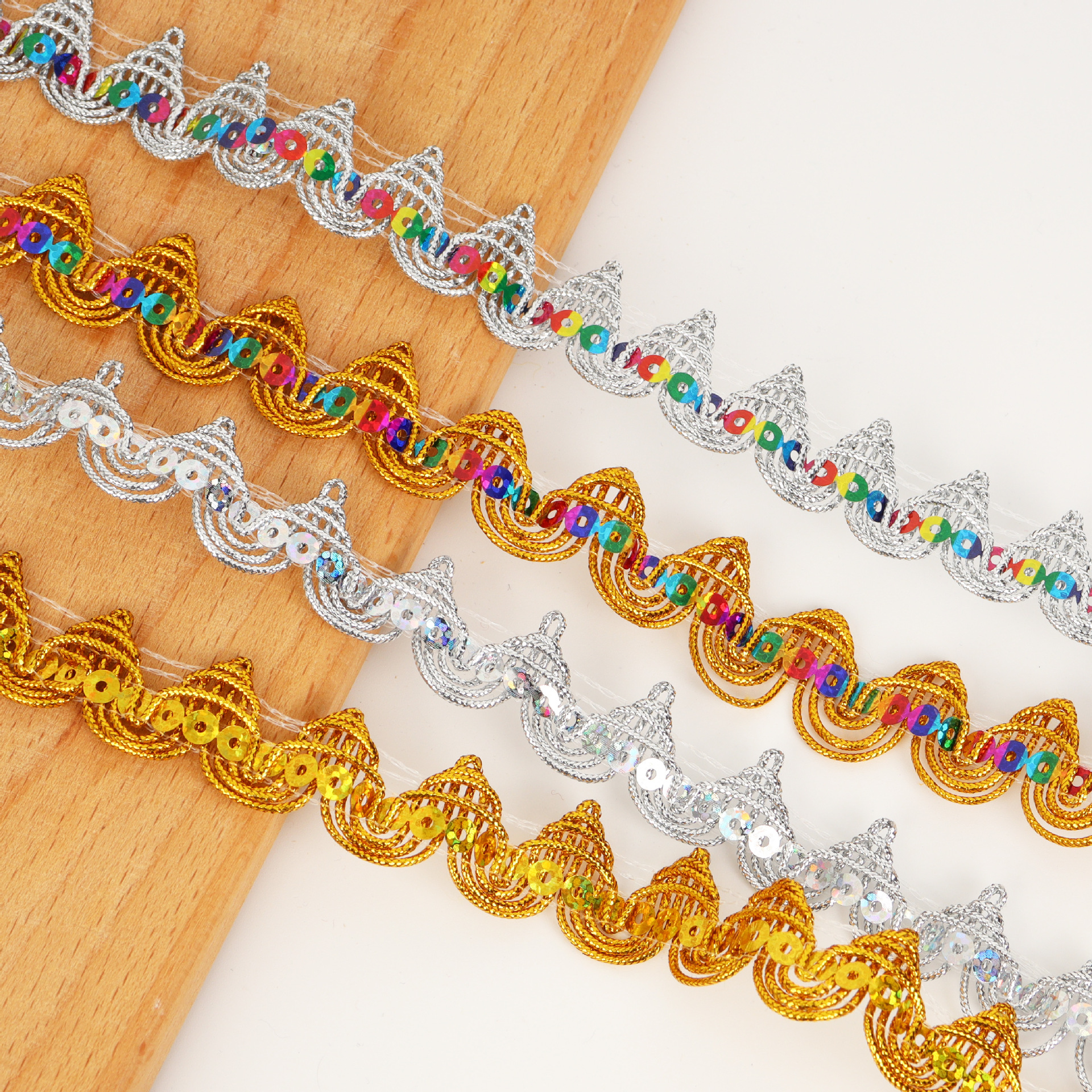 Gold Thread Sequin Lace 5cm Water-Soluble Embroider Crown Golden Ethnic Style Accessories Children's Clothing Dance Performance Clothing Lace