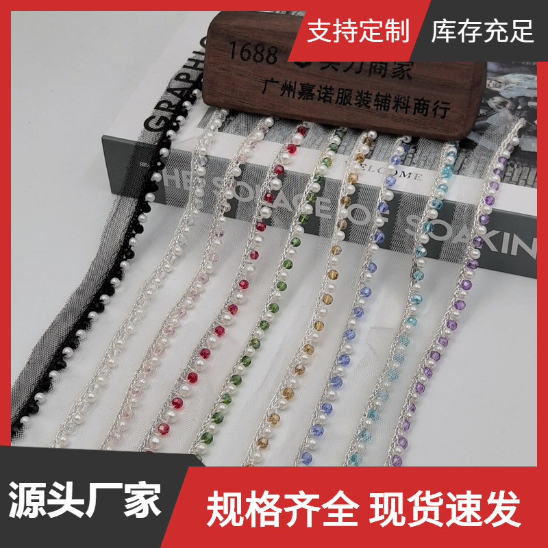 Hand-Sewn Gold-Covered Silk Webbing, Colorfulful Crystal Pearl Webbing, Ethnic Style, New Chinese Style Han Dynasty Clothing Accessories, Lace