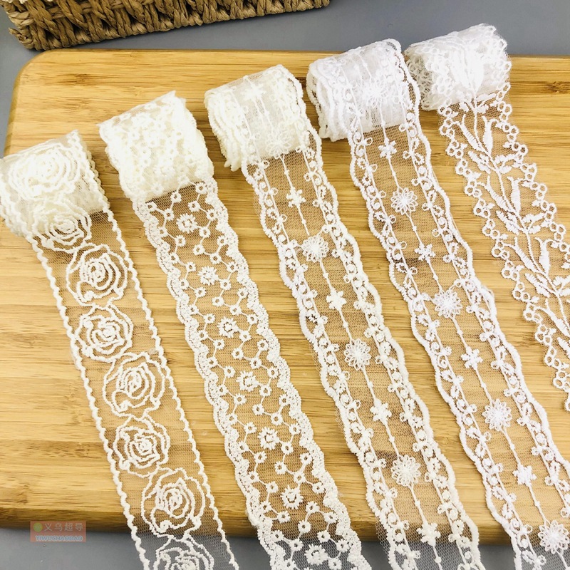 Lace Trim Accessories for Tying Bows, DIY Milk Silk Mesh Fabric, Embroidered Off-White Transparent Hair Accessories, Clothing