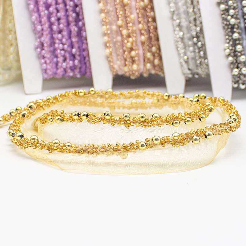In stock wholesale handmade beaded mesh ribbon crystal pearl lace ethnic style hanfu decorative accessories lace