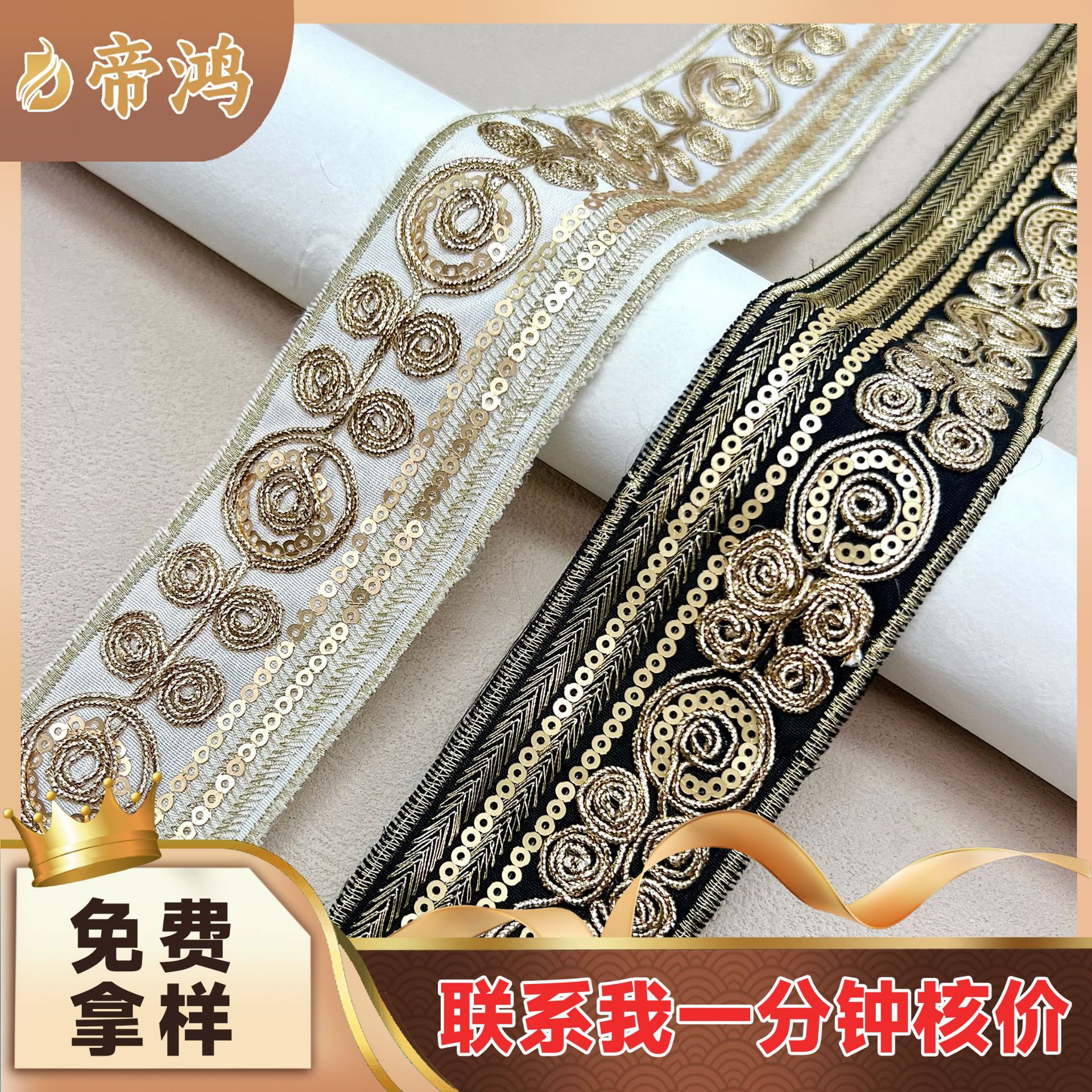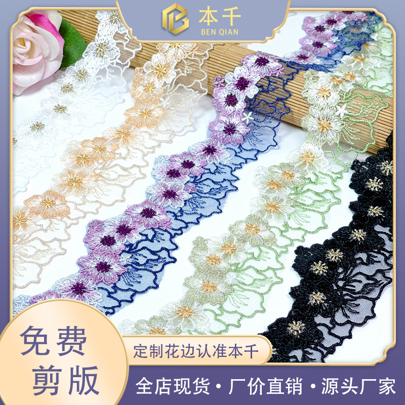 Ethnic style gold strand sequins embroidery lace 5cm National style hanfu ribbon clothing accessories accessories factory direct sales