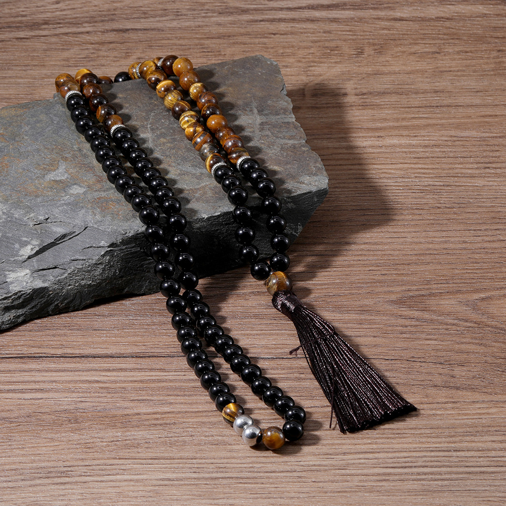 Cross-border new necklace 108 tiger's eye yoga meditation mala necklace tassel long vintage sweater chain