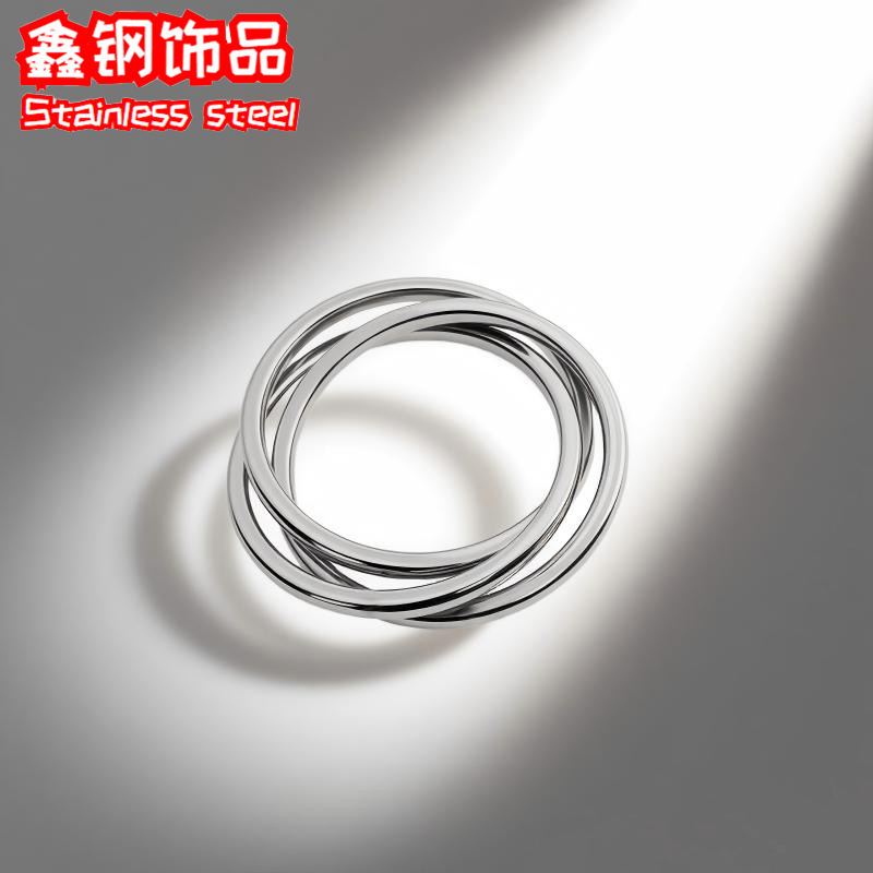 Three Rings Titanium Steel Couple Ring Rotating Anti-Anxiety Meditation Mindfulness Ring Cross-Border Jewelry