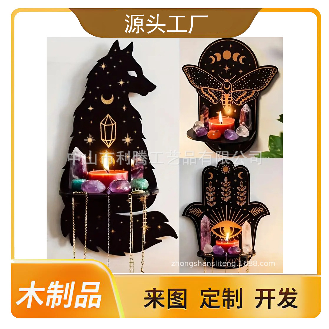 Cross-border New Wooden Candlestick Pendant Creative Meditation Stand Crystal Display Stand Wooden Crafts Hand of Farmati